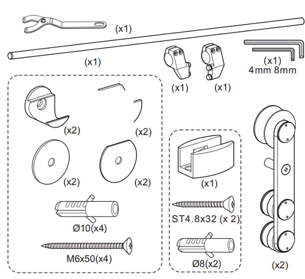 Additionally, this wall mounted sliding door system provides a quiet and smooth operation ideal for shared spaces, with its stainless steel hangers moving gently along nylon wheels.
