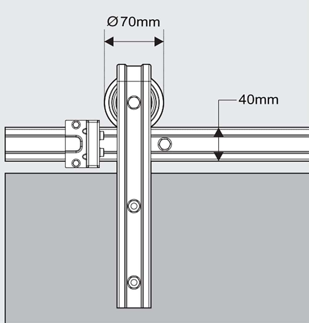 Our black sliding door hardware has a maximum burden capacity of 40kg (88 lbs) and a working cycle of 50,000 cycles. It is compatible with flat track systems and suitable for doors between 35 and 40 mm thick.