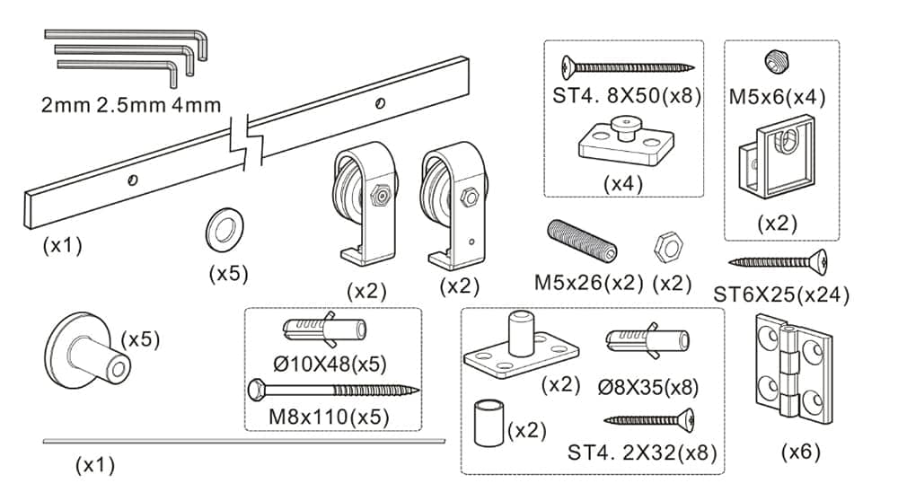 This is the classic bifold barn door hardware. The barn door was usually used on both sides of the doorway against the wall. This door is perfect for a variety of decor styles, such as rustic style, industrial style, nordic, modern style, etc. It has become a choice for more and more households globally.