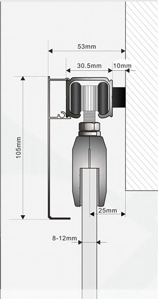 Featuring a rail length of 2000mm (78-3/4 inches) or customizable options, it accommodates wooden doors and metal frame doors with thicknesses ranging from 8mm to 12mm. With hanging wheels and door stops cleverly concealed within the track, it also presents a streamlined and minimalist aesthetic.