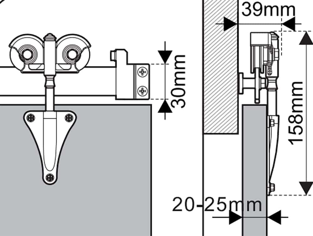 This mini sliding barn door hardware is made of robust carbon steel, finished with a sleek black powder coating, and boasts a remarkable working cycle of 100,000 cycles. Engineered for wooden doors and designed to accommodate door thicknesses of 25mm (1 inch), it perfectly balances form and function. Additionally, the soft closing feature, available as an option, enhances the convenience and functionality of this exceptional product.