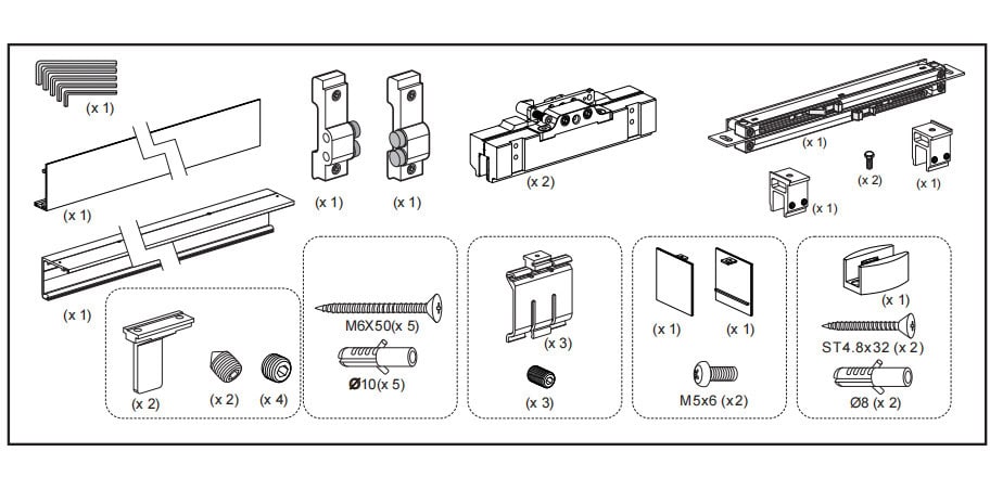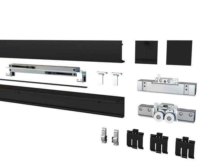 Versatile design: The pulleys and rails are universal, allowing for use with both glass and wooden doors. Wooden door connectors can be added, and the swing stop can be instantly replaced to accommodate different door types.