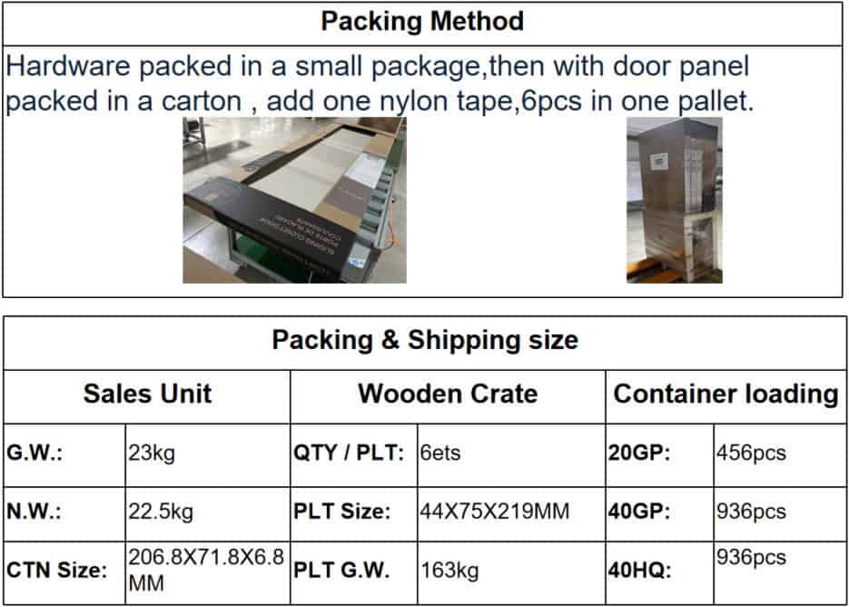 - Dimensions: Door size of 48 inches x 80 inches (installed) with a thickness of 40mm.