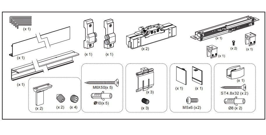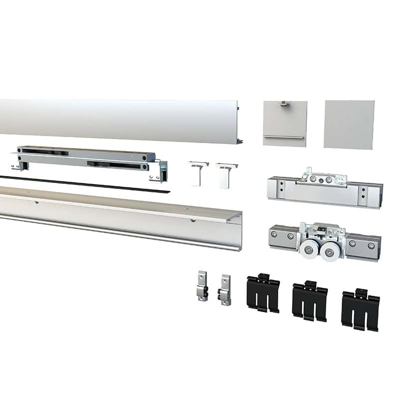 - Universal track for glass or wooden doors (wooden door connectors sold separately)