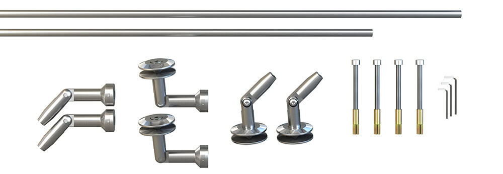 Featuring a rod-style design, this door canopy kit is constructed from durable stainless steel SS304 and laminated tempered glass, with a brushed stainless steel finish and clear glass that provide a sleek, modern-tech look.