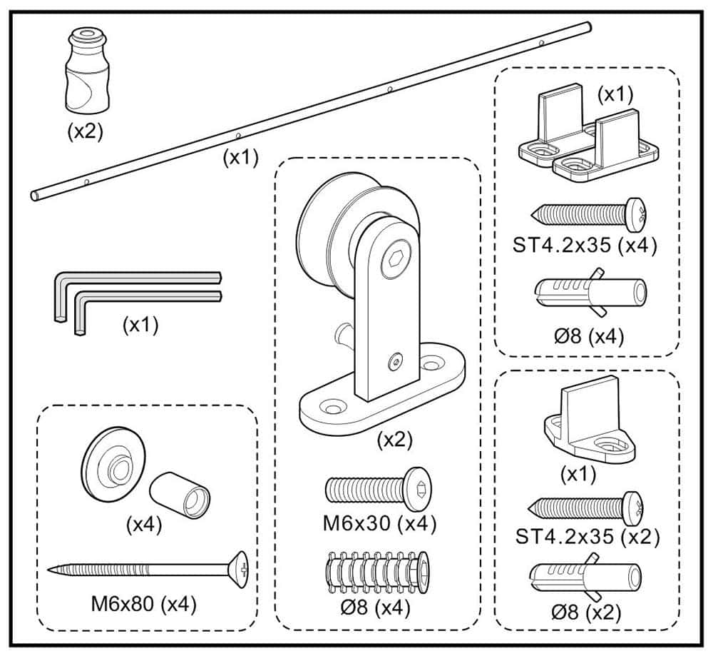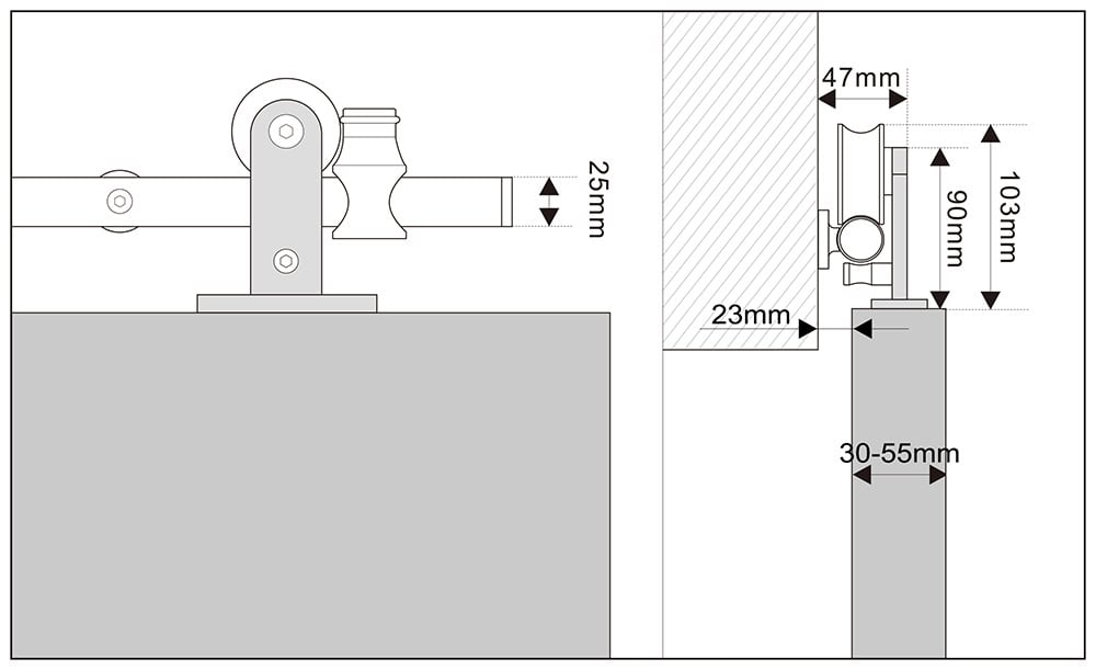Our versatile barn door stainless steel hardware is compatible with wooden and metal frame doors, accommodating door thicknesses ranging from 30mm (1-3/16 inches) to 55mm (2-11/64 inches).