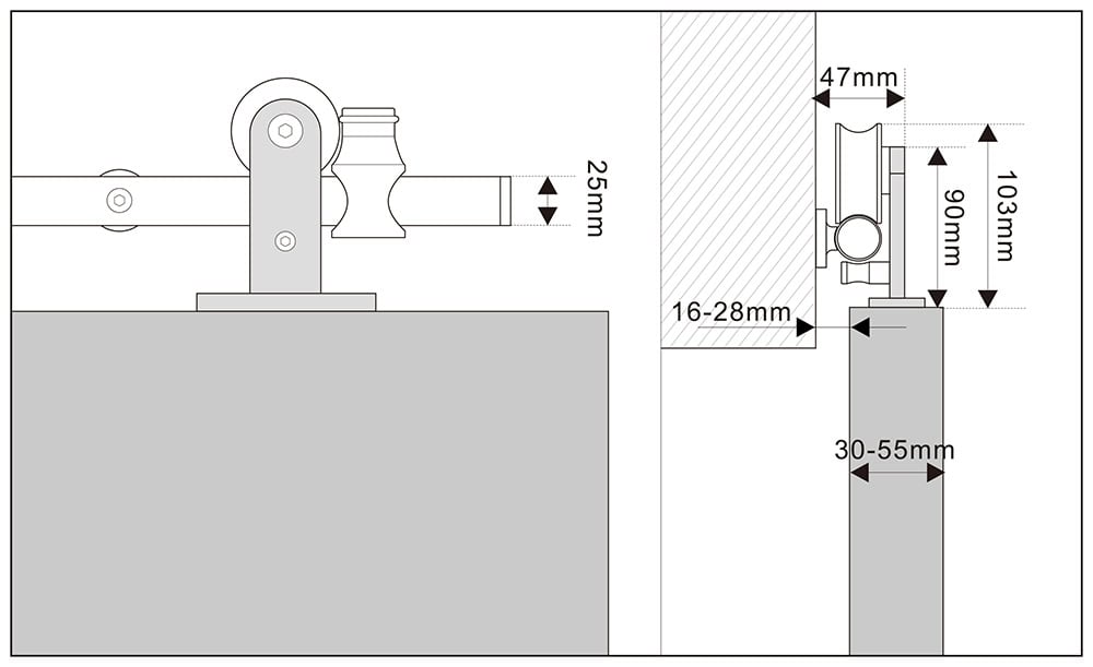Furthermore, with an impressive maximum loading capacity of 120kg (264 lbs) and up to 100,000 working cycles, this sliding door hardware stainless steel system is built to last.