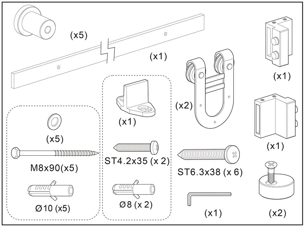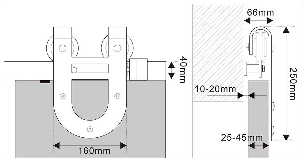 With a rail profile measuring 40x6mm, our versatile interior sliding barn door hardware accommodates a range of rail lengths, making it suitable for various door sizes.